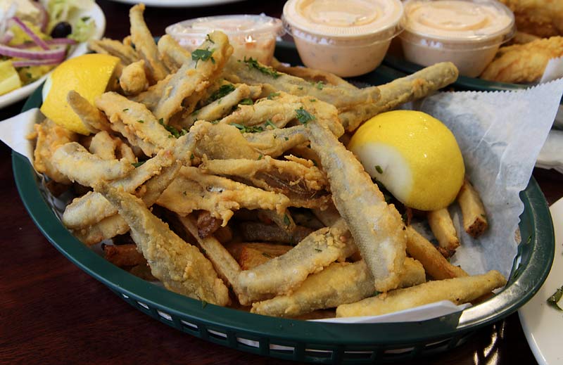 Moving a little more than 5,000 miles west from Santorini brings you to the fried perch and smelt. Both were outstanding. The perch was perfectly fried - delicate, crisp, moist, flavorful. The smelt were about as good as I've had. Usually I find them terribly overcooked, sometimes overly-breaded. These were so lightly breaded and perfectly fried. You hardly need to dip the perch and smelt, but there is malt vinegar and house-made tartar sauce should you wish. The tartar sauce was fine, although I prefer mine tarter and with dill.