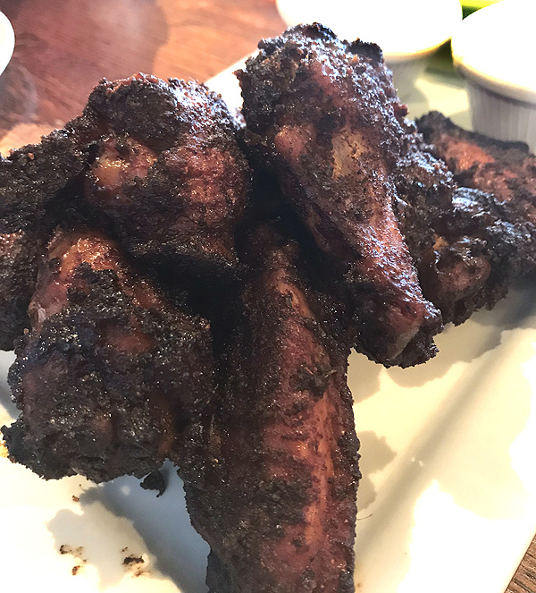 Smoked Chicken Wings, served with both chunky blue cheese and ranch dressing.